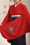 シンプルなのに大胆!赤地の二尺袖にグレーのぼかしが入った袴をセレクト。大人っぽくキメたいという方にオススメのコーディネートです。