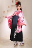 - 黒とピンクのコントラストが大人カワイイ二尺袖。華やかで豪華な印象を与えます。