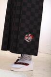 - 黒字に市松模様のゴージャスな袴。ワンポイントの刺繍がかっこいい。