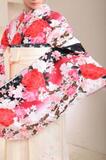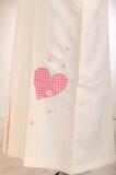 ゴージャスなバラの花咲く二尺袖に、クリーム色の袴を合わせて甘い雰囲気をプラス!袴に描かれた、キュートな千鳥柄のハートもポイント。遠目に見てもパッと華やかなコーディネートです。
