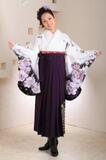 白地にピンクと赤のバラが描かれたキュートな二尺袖に紫の袴を合わせて、さらにゴージャス感UP!大人カワイイ袴フルセットです。