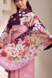 - 紫とピンクのコントラストが大人カワイイ!贅沢に描かれた花々が印象的な二尺袖。