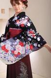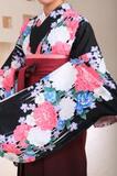- 黒地の上品な二尺袖。大輪の花々がゴージャスな雰囲気を演出します。