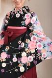 - 黒地に桜の花がキュートなあなたを演出!かわいらしさと大人っぽさを兼ね備えた二尺袖。