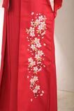 - 美しい桜の刺繍が施された袴。鮮やかな赤色で、卒業式はいつもより大胆に!
