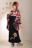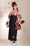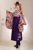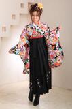 黒地に様々な花が描かれた華やかな二尺袖に、シンプルな袴をコーディネート。黒が好きなあなたにオススメ!