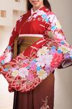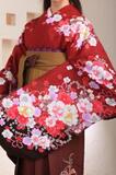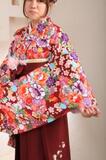 - 地色がエンジの、賑やかな二尺袖。カラフルな花々がインパクト大!