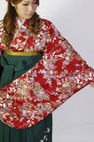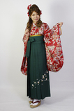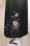 - 小さな桜がかわいらしい、濃い緑の袴。