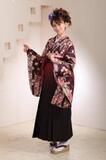 - 桜の花が描かれたエンジの二尺袖。着こなし次第で大人っぽくもかわいくもなります。