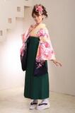ナチュラルでかわいい二尺袖にエンジの袴を合わせたフルセット。とても女の子らしい着こなしです。